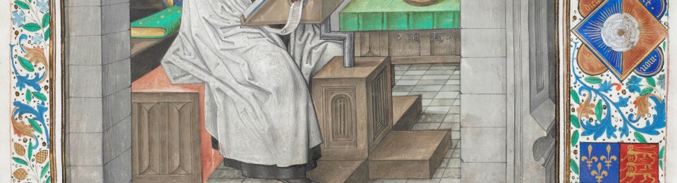 Vincent de Beauvais – o pagină de „manuscris iluminat”. Imagine din domeniul public, oferită de Biblioteca Britanică.